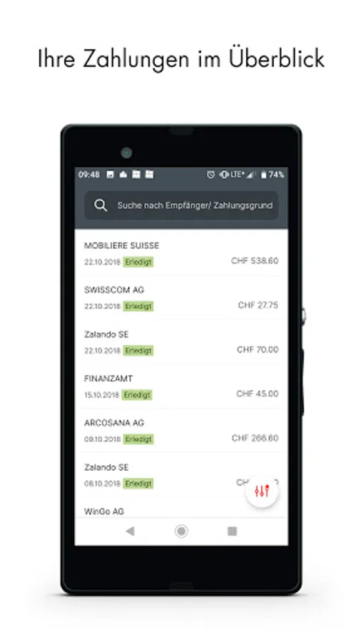 With the app you can also record your payments on your mobile device. The payment assistant supports you with your entries.
