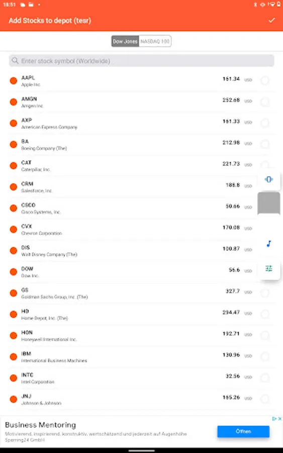 Tailor your watchlists to your liking by naming them and populating them with the desired stocks. Create a watchlist for the Dow Jones, global stocks, or pharma stocks, for example. You can also take advantage of our pre-made lists, which you can expand or customize as you wish.