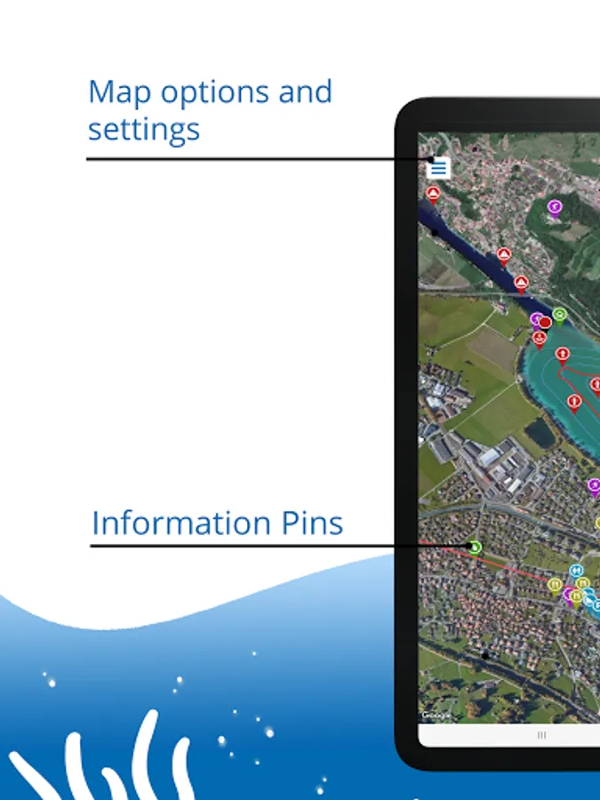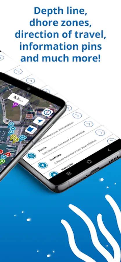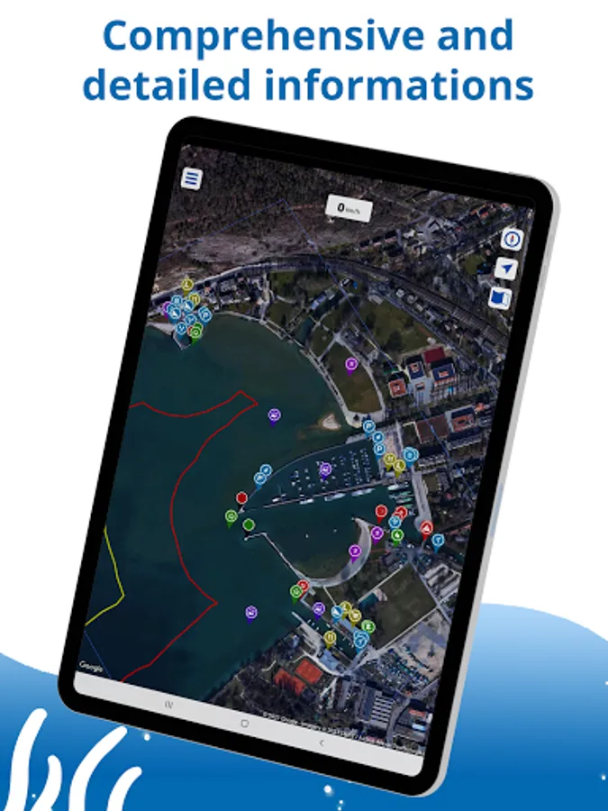 The app has all the important and useful information for water sports enthusiast. E.G.: Gas stations, restaurants, harbour offices, toilets, depth information, shore zones and waste disposal point are each marked on the spot with a pin and can be individually shown or hidden. The app is a harbour guide, a sea chart and a tourist guide all at once.