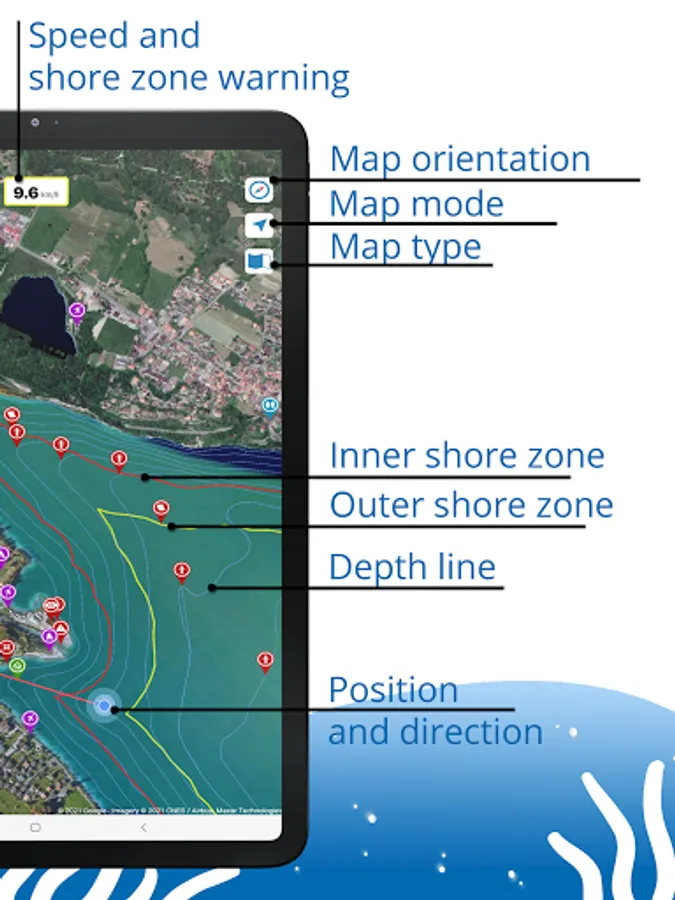 The BoatDriver-Guide app warns you when your boat is in the shore zone and travelling too fast.