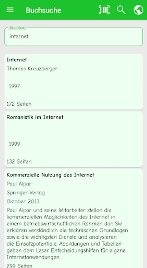 In addition, there is an integrated book search (ISBN number or text) with an ISBN barcode reader.
