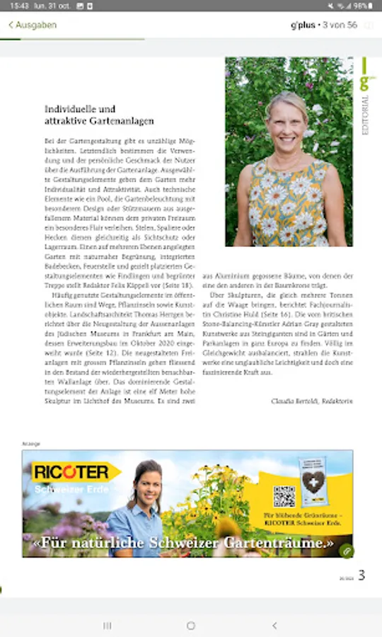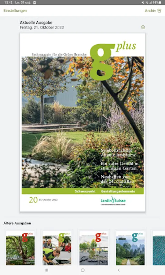 The official app of the journal g'plus the trade association gardener Switzerland JardinSuisse.