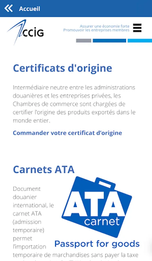 Association of private law, independent of the State, the CCIG aims to ensure a strong economy, allowing the actors who constitute the local economic fabric to exercise their activity in a perennial way.