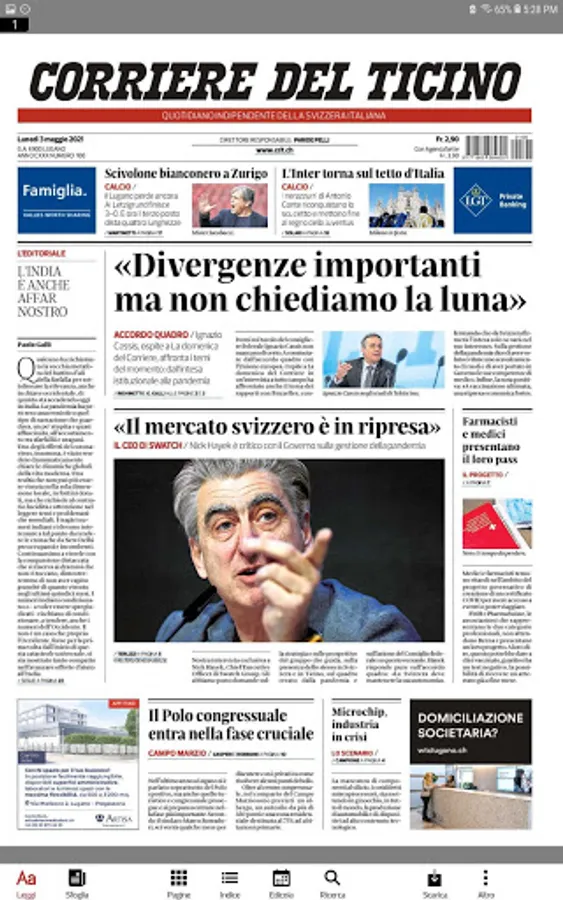 Download the new version of the Corriere del Ticino Digital for free. Starting from 6 you will be able to access the pages of the newspaper and read it in a simple and pleasant way.