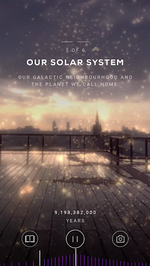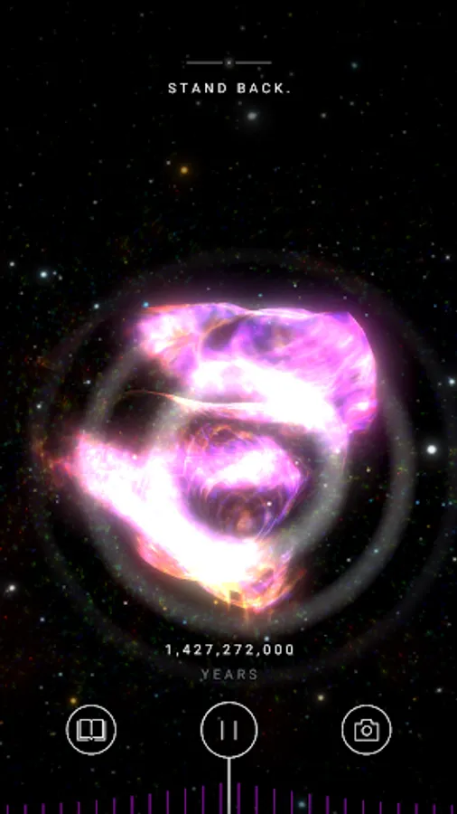 See the universe form in the palm of your hand. Witness the formation of the very first stars, our solar system, and the planet we call home. Immerse yourself in the primordial mystery of the early universe in space and watch events unfold around you, in your own physical environment.