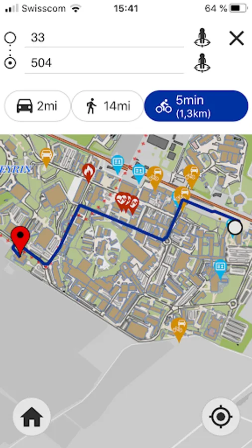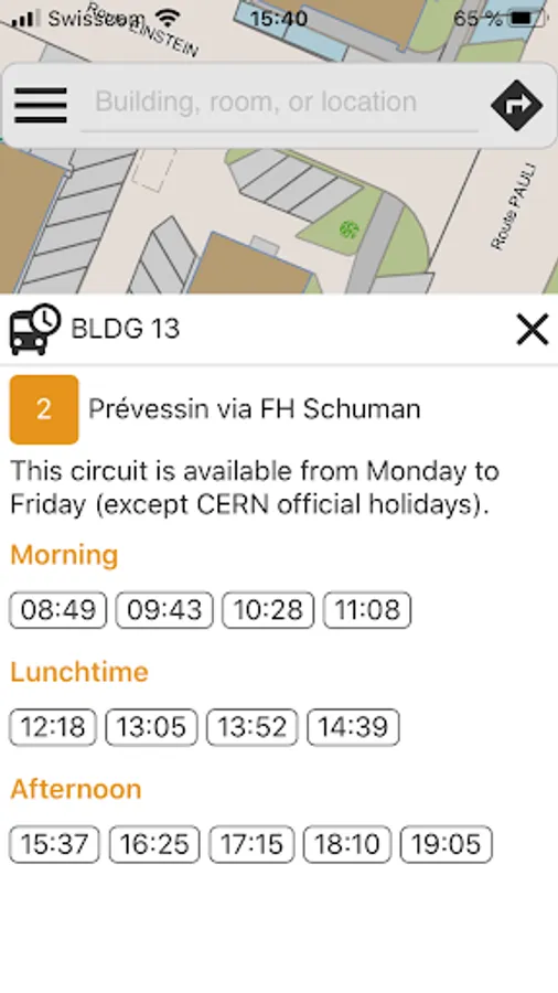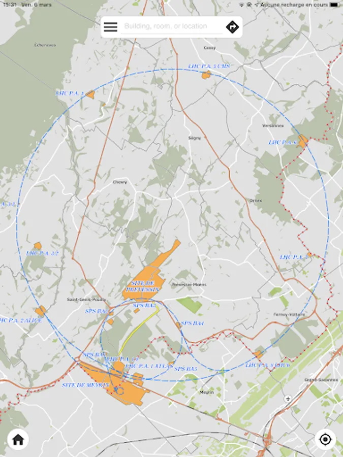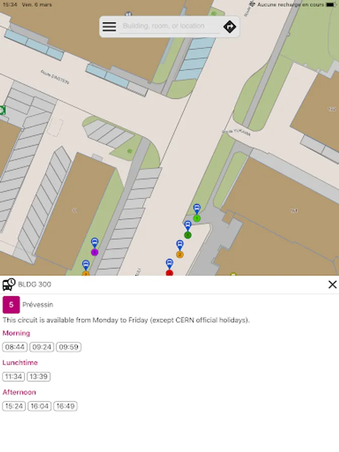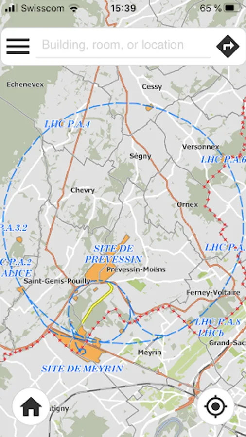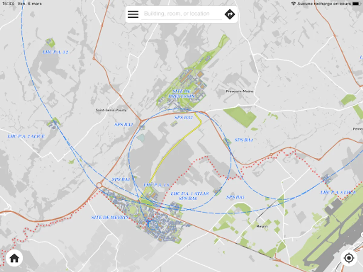 The app displays useful geographic data on a map allowing its users to search for buildings, rooms and locations at CERN.