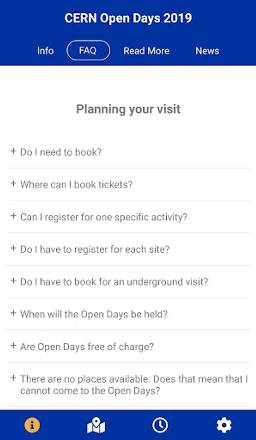 The CERN Open Days app will provide you with practical information and show you interesting visit points, possible parking and the places where you can grab some food or beverages. With an accurate map, you will never get lost.
