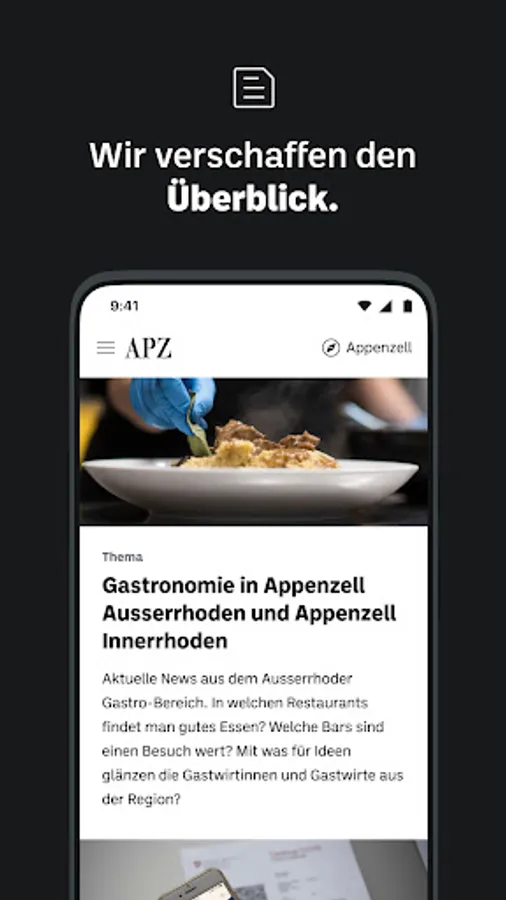 With the "Appenzeller Zeitung" news app, you can stay up to date with the latest news from Appenzell and your community while you're out and about. In addition to our regional content, we provide you with the most important news on a national and international level every day.