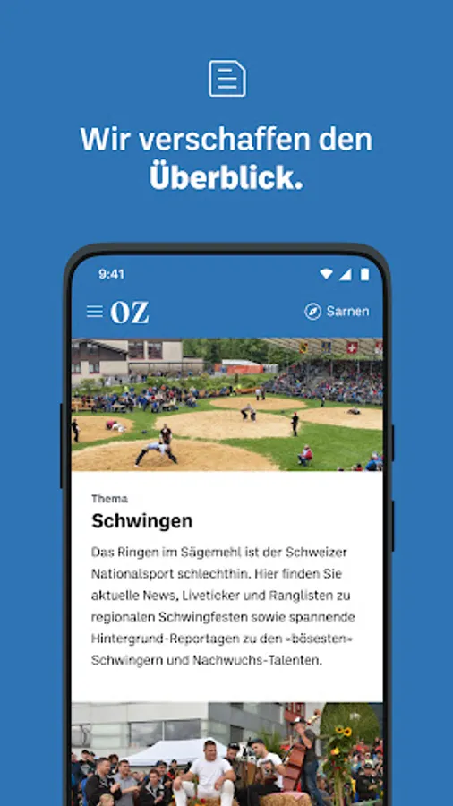 With the "Obwaldner Zeitung" News App, you can stay up to date with the latest news from Obwalden and your community while you're out and about. In addition to our regional content, we provide you with the most important news on a national and international level every day.