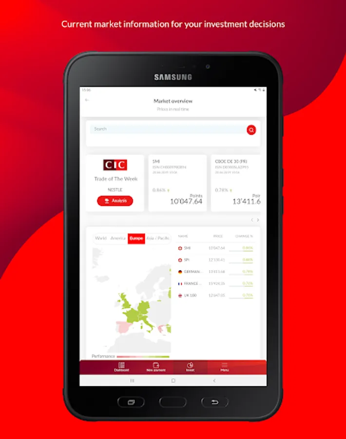 CIC eLounge offers you many options to efficiently and easily complete your banking transactions and keep an eye on market developments. And with the CIC eLounge app, you can conveniently take care of your banking business on your smartphone or tablet – whenever you like and wherever you are.