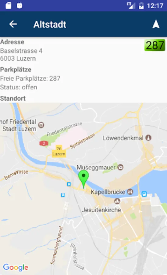 This app shows you the number of free parking spaces, the status of the parking garage and its position (GPS). It also enables convenient navigation.