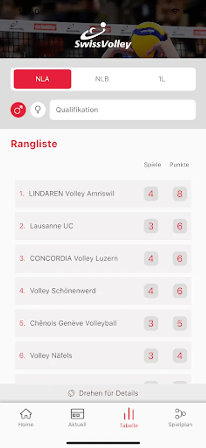 * Detailed leaderboards: If your rank, number of games played and score of your favorite team are not enough for you, then you should rotate your iPhone! In landscape format, the number of lost and won games as well as the ball and set quotient are also displayed!