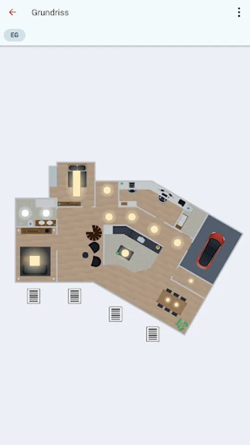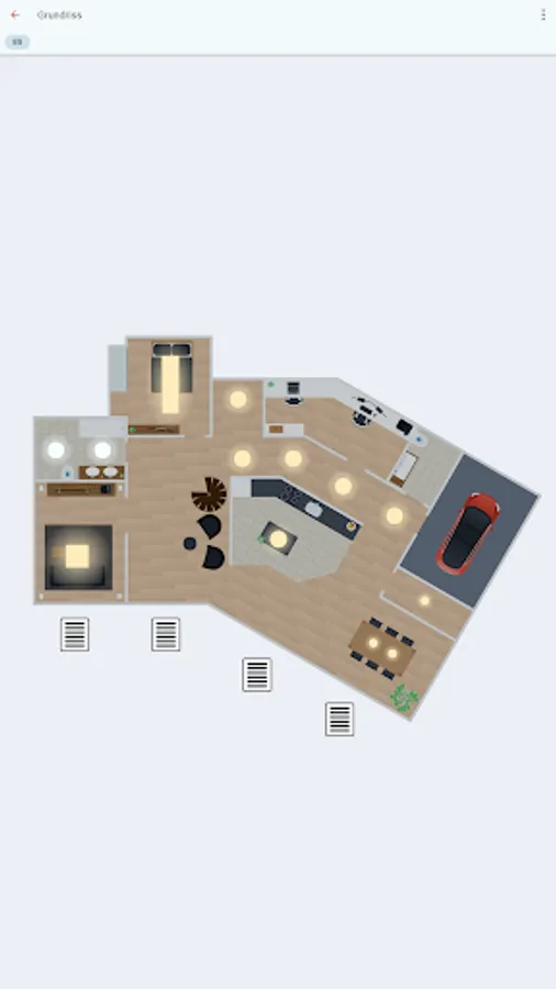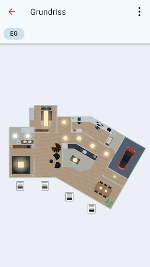 With the controlHome app you always have your home with you. On the floor plan you can always see which lights are switched on, which windows and blinds are open, the temperatures in the individual rooms and much more.