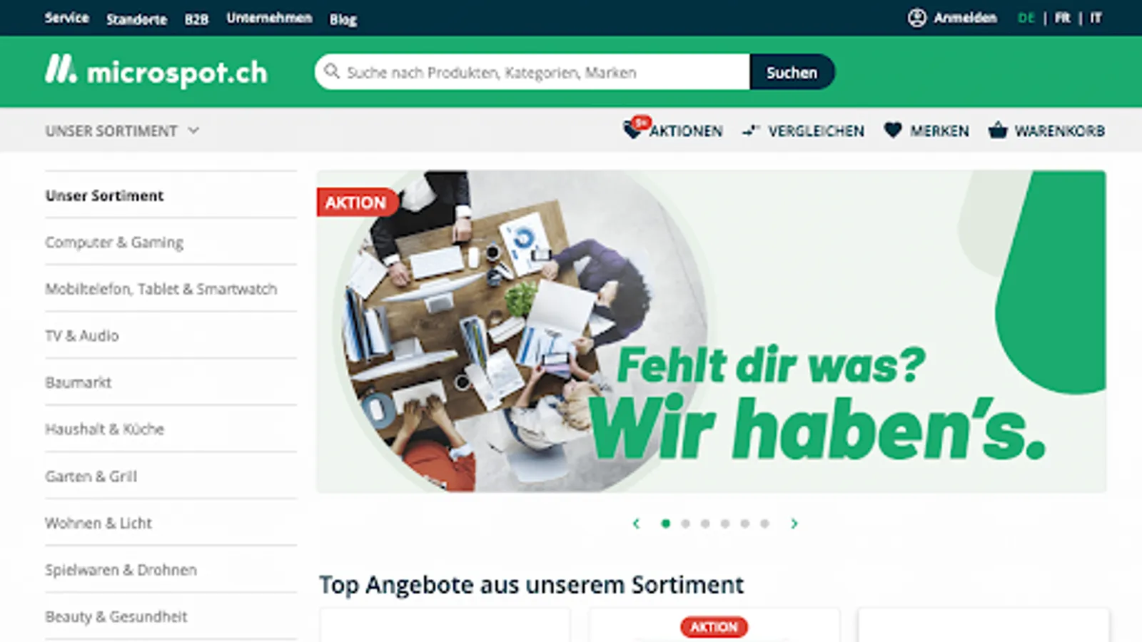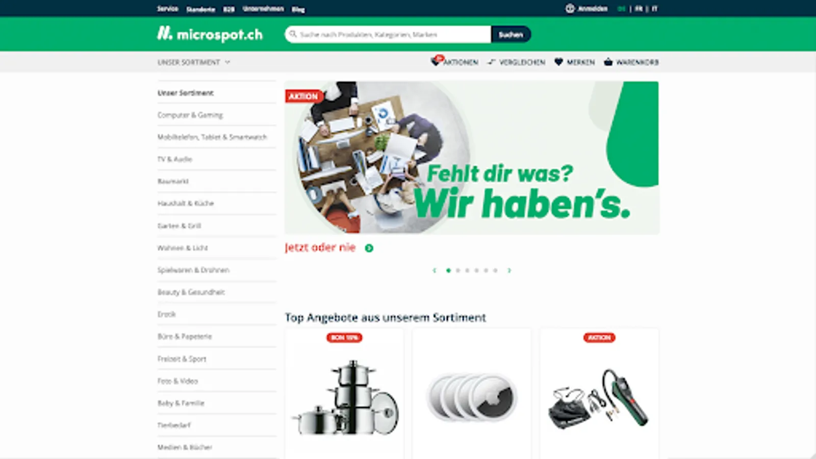 microspot.ch is the online shopping center of the Coop Group and, in addition to home and entertainment electronics, offers an extensive range from the areas of living, toys, beauty, office, hardware store, sports and much more. microspot.ch not only impresses with a focused range of products that offer customers added value for everyday life and leisure, but also with the most attractive prices and promotions, with comprehensive services and with the fastest and most reliable delivery service in Switzerland. Orders for speed items by 12 p.m. are delivered to your home on the same day in the larger cities. In addition to home delivery, all orders can also be picked up at 500 pick-up locations or in the two microspot.ch showrooms in Jegenstorf or at Zurich main station. The attractive and fast online shop guarantees a relaxed shopping experience for customers and offers comprehensive functions for efficient shopping for B2B customers.