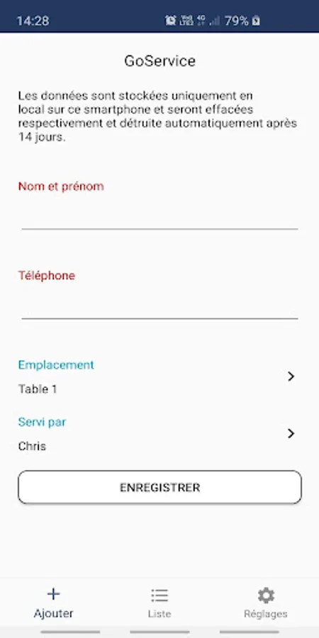 This App allows restaurants and other businesses to quickly and easily enter customer contact information. The date and time is saved automatically.