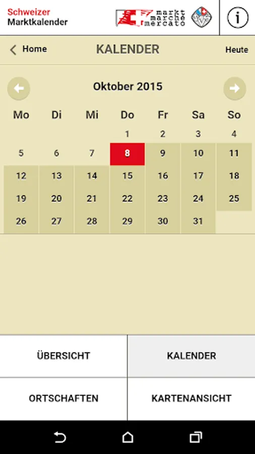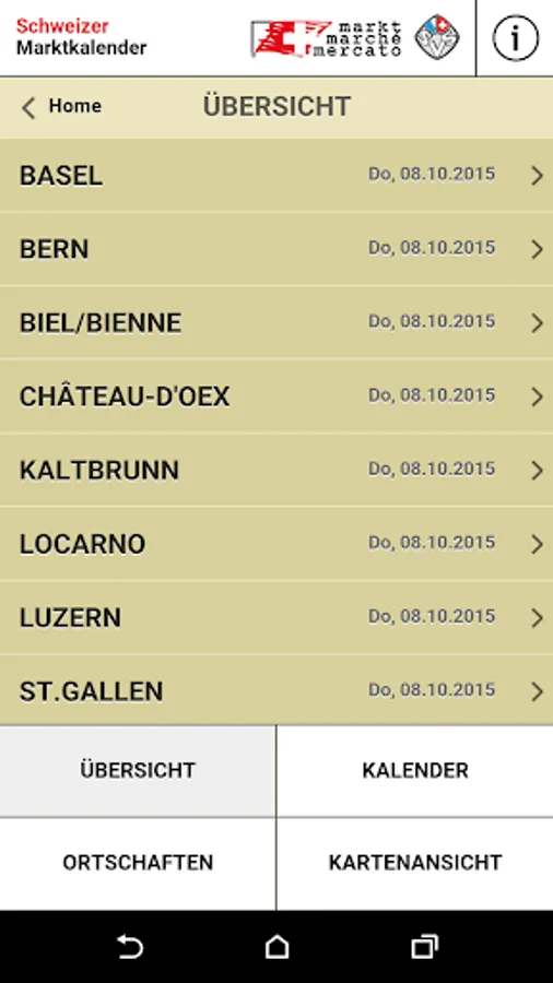 The app of the Swiss Market Association, the professional association for the Swiss market trading, provides an overview of current and future markets.