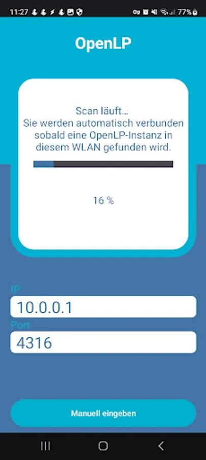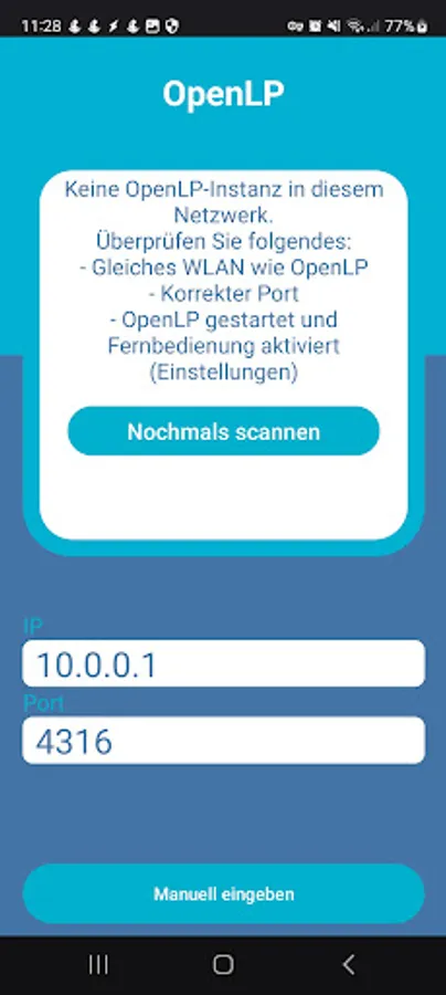This app automatically searches for an OpenLP instance within the WLAN.