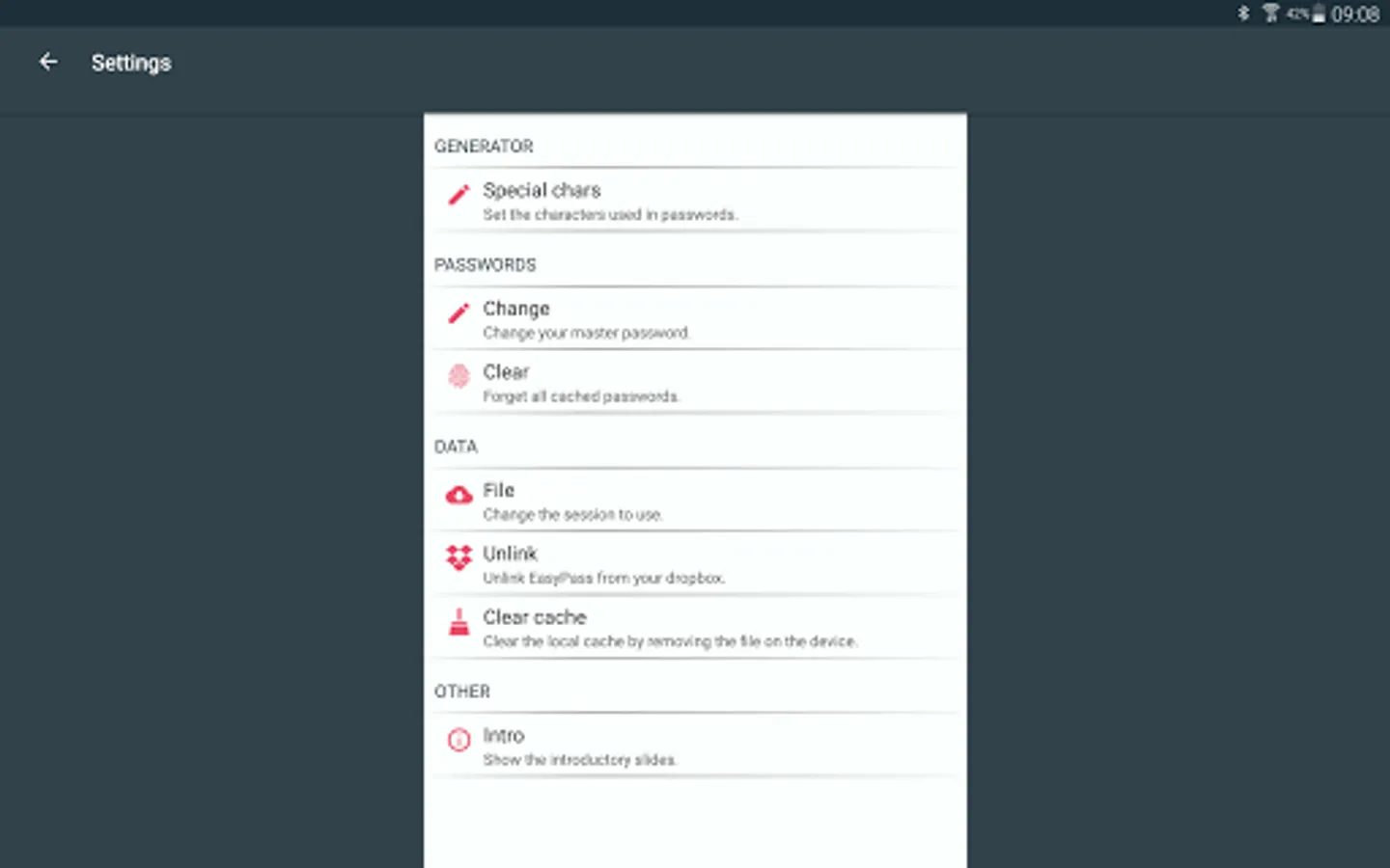 EasyPass doesn't have a cloud. Instead, all the passwords are saved in a simple file (FYI for nerds: Json format) synchronised on Dropbox. To ensure password security, the contents of the file are encrypted locally using the AES-CBC encryption algorithm. This algorithm is currently considered strong and yields another advantage: it is supported by many softwares, including OpenSSL.