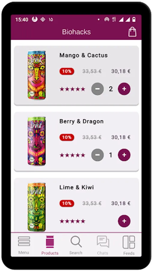 Using the Biohacks app, users interacts in the Biohacks social network, share their biohacking data, send and receive end-to-end encrypted private messages, and purchase Biohacks products using its e-shop.