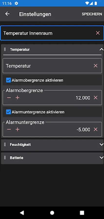 If the sensors send new measured values, these and the time of sending are also displayed in myAlerts.