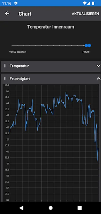 Displays the measured values as a line diagram, selection of different measurement periods, zoom for details