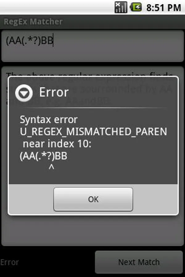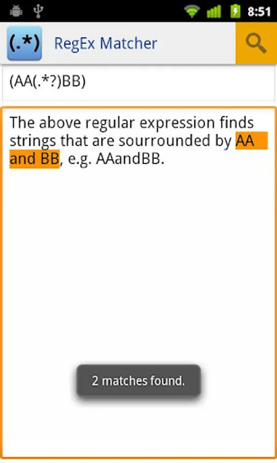 Very simple application for developers to check your regular expressions. Marks first hit in the text area and tells you how many matches were found.