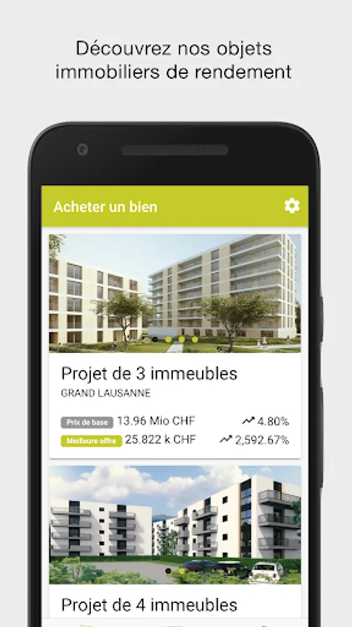 As an investor or landowner, participate in real estate yield auctions from your smartphone. Benefit from comprehensive information about our real estate objects and transactions! Bet in a transparent and anonymous way on the objects of your choice!