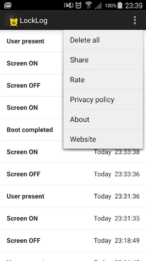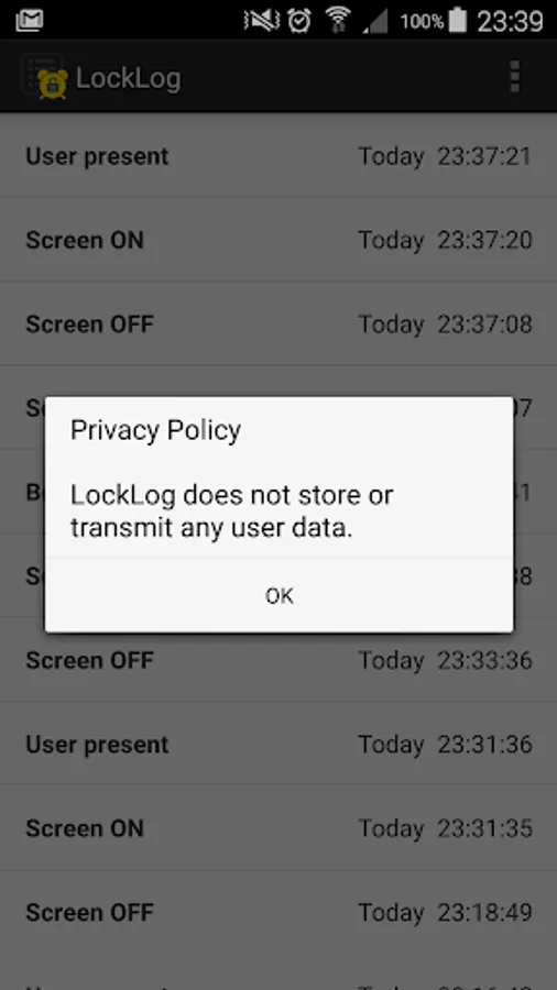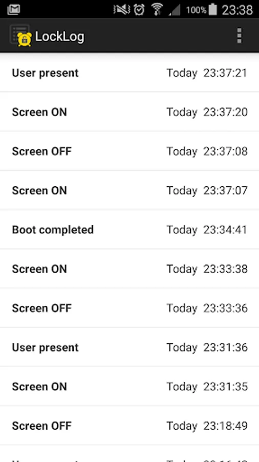 LockLog registers lock screen events. You can know if your phone has been unlocked or woken up during your absence.