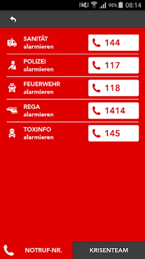 - Directly dialable emergency numbers of the blue light organizations (police, fire brigade, ambulance service, etc.)
