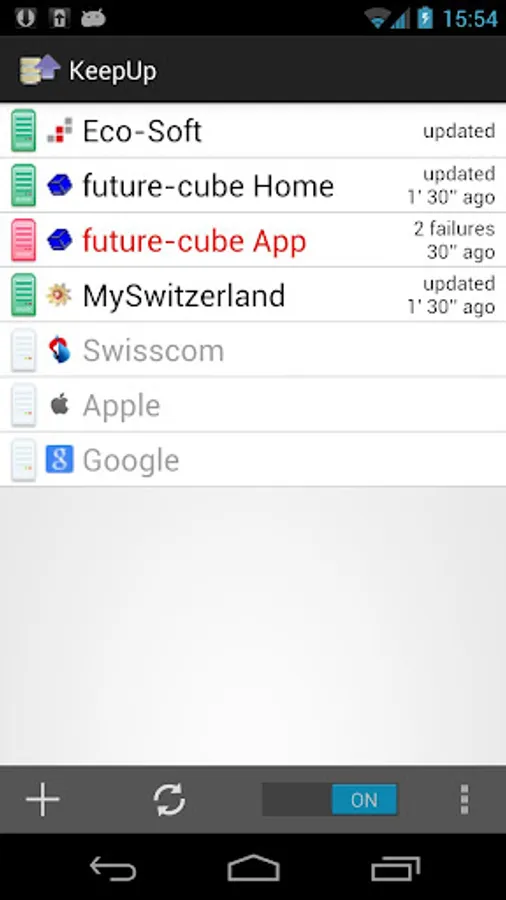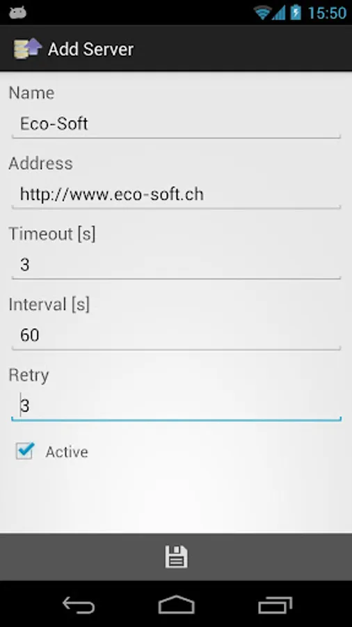 Server monitor to observe multiple HTTP hosts. Server requests are running as service in the background. The monitor panel provides a status overview of the servers.