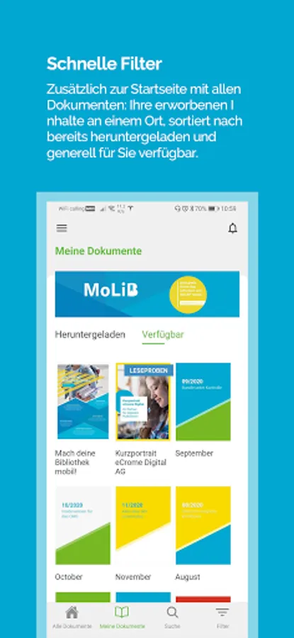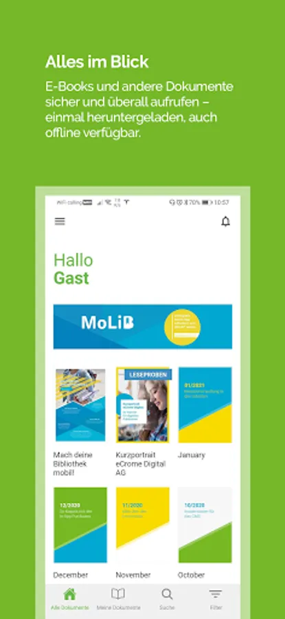 Try out your new mobile library without obligation and learn more about the functions of MoLib®, your new solution for e-publishing. You will be enthusiastic!