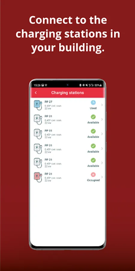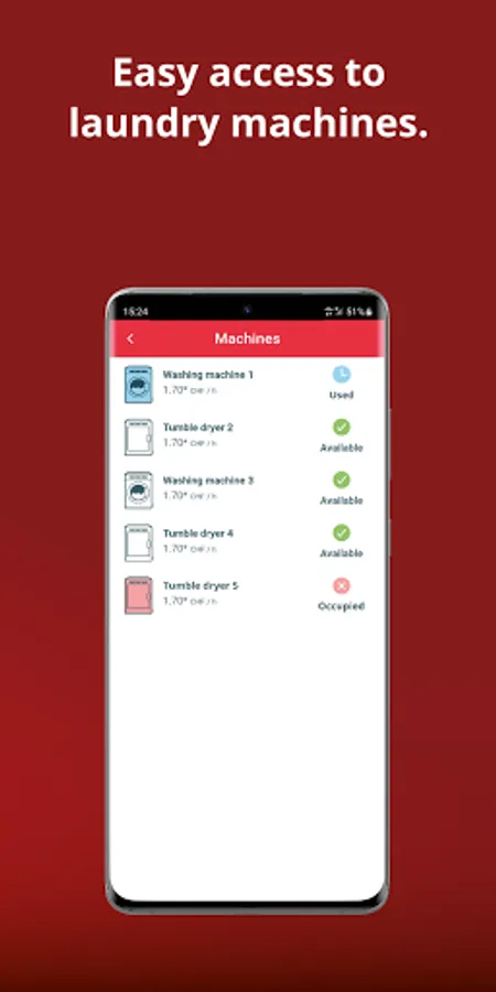 You can check the availability of the equipment (washing machines or charging stations for electric vehicles) in real time and reserve them*. After your use, the balance of your account is automatically debited.