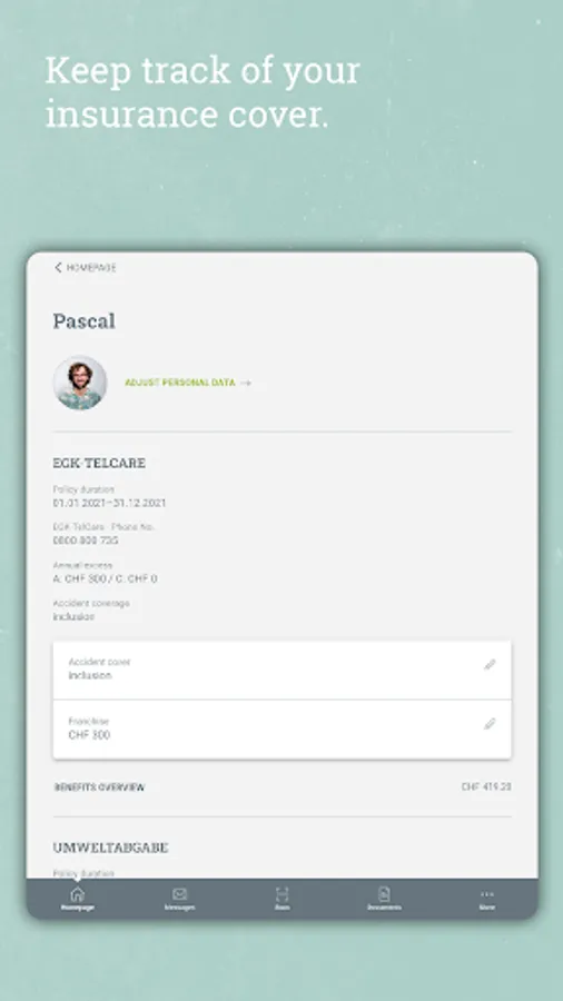 • Change your personal data, your deductible, your accident cover or your EGK Care doctor yourself – without having to go through the agency.
