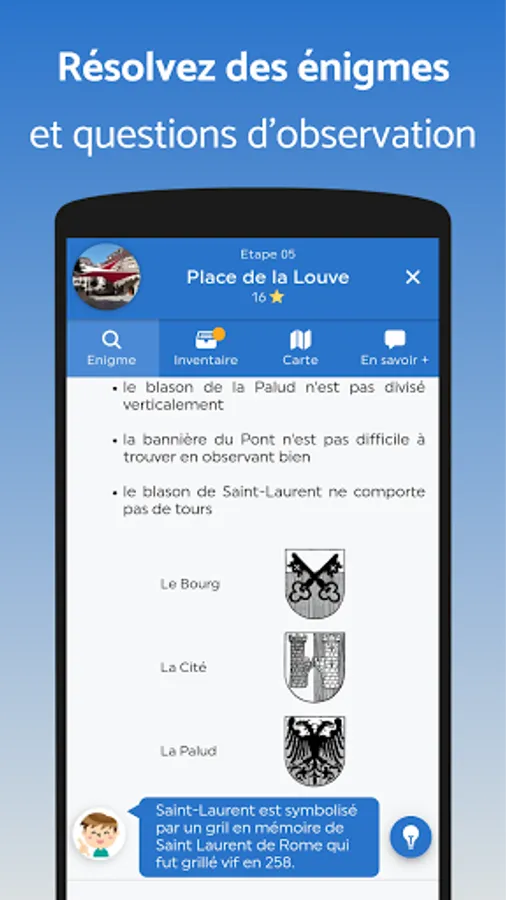 A virtual companion will accompany you throughout your walk and give you valuable clues when you need them, so that you will always be able to move on.