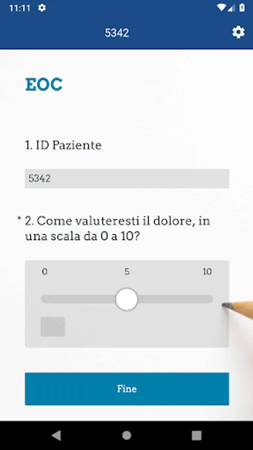 Application created at the cantonal hospital organization (EOC) for monitoring patients' symptoms. The daily monitoring of the patient's symptoms (Ecological Momentary Assessment or EMA) is useful for obtaining detailed and accurate information about the disease the patient is suffering from. The data collected by the application are used for clinical and scientific purposes. The data is recorded by the application in coded form, and no one, apart from the EOC doctors involved in the study, can access it or go back to information about the user.