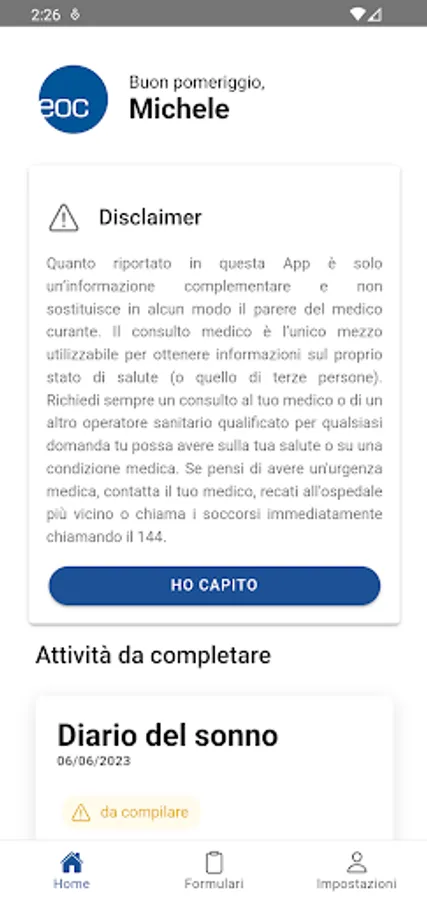 The first version of Insieme EOC provides for the possibility of completing questionnaires in a secure way and will be offered by the various clinics or departments to those patients who will best benefit from it.