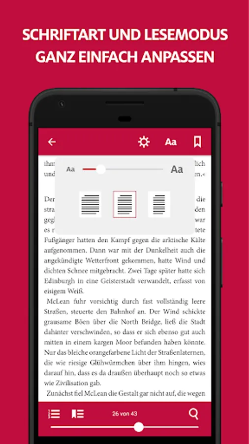 Create your own personal reading Atmosphere: font size, font color, background, brightness, and the margin can be adjusted individually!