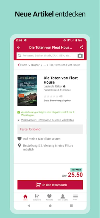 Put your favorites in the shopping cart and have them conveniently delivered to your home (only possible in Switzerland and the Principality of Liechtenstein). Alternatively, you can check product availability in our branches using the branch finder and pick up the desired product in a branch near you. Orders can be placed by credit card, Postfinance card, TWINT or by invoice.