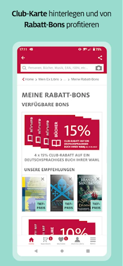 • Manage your Ex Libris account, your Club account and your watch list: Enter your Cumulus card number, call up the current order and billing status or simply change your order and delivery address and much more.