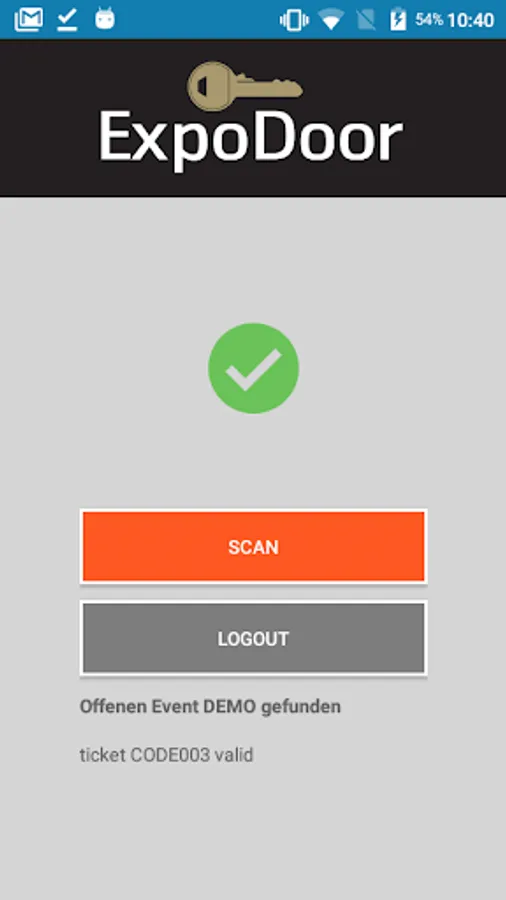 This app only works in conjunction with the ExpoDoor ticketing solution from BSL Ticketprint AG. With the help of the ExpoDoor Scan app, the ticket is scanned at the entrance control and checks whether the ticket code is valid. The registration of new installations must be manually unlocked.