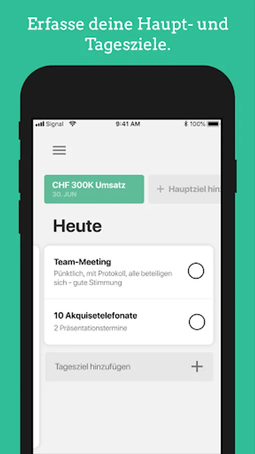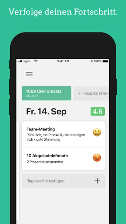Jeder Gedanke hat die Tendenz, sich zu verwirklichen. Diese App hält Sie auf Kurs. Sie definieren einmal Ihre 4 Hauptjahresziele und jeden Tag Ihre Tagesziele. Sie definieren auch wie Sie die Ziele erreichen und wie das Resultat aussehen soll. Am Abend bewerten Sie kurz mit Emoticons wie zufrieden Sie mit der Zielerreichung sind. Holen Sie sich die App ab Mai 2020 im App Store.