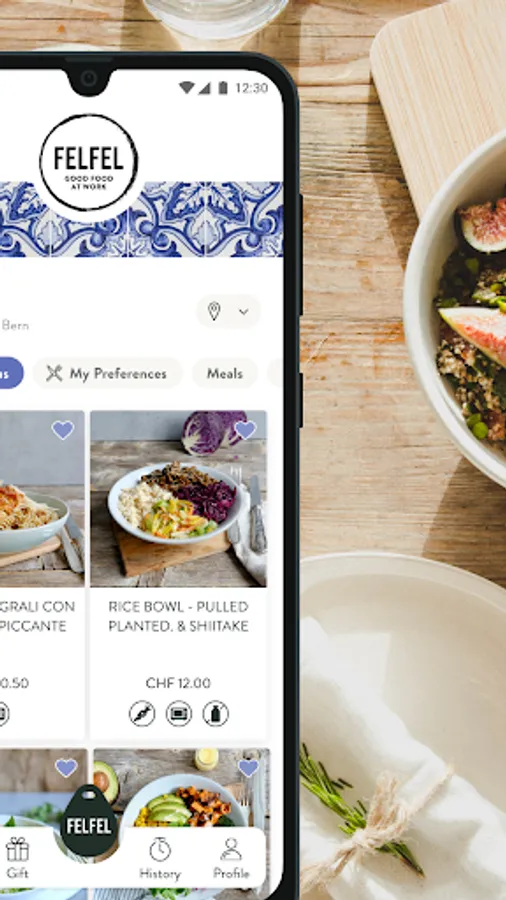 Download the app, set up your Badge and enjoy a healthy meal from the FELFEL fridge – or a really good coffee at the Gavetti coffee machine.
