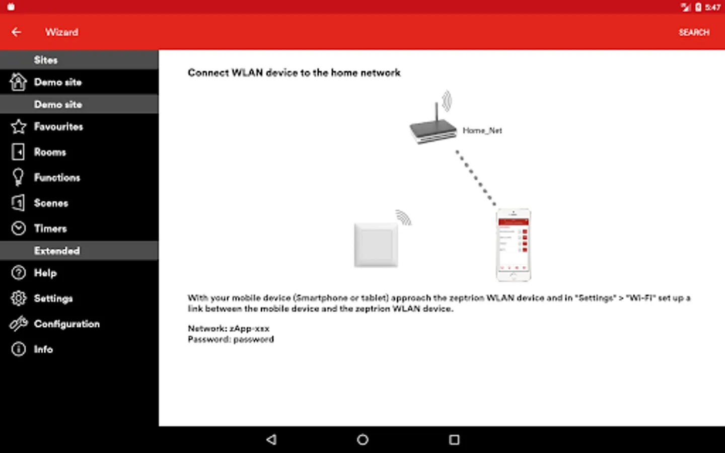•The zeptrion App works in the same WLAN-based home network as the Feller zeptrion WLAN devices intermediate module 2C and extension unit 4C