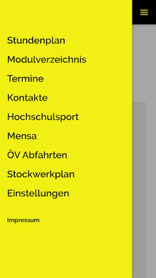 It contains the floor plans of the building, the library, university sports, the person search, the current menu of the cafeteria and other important information for everyday life at the university.