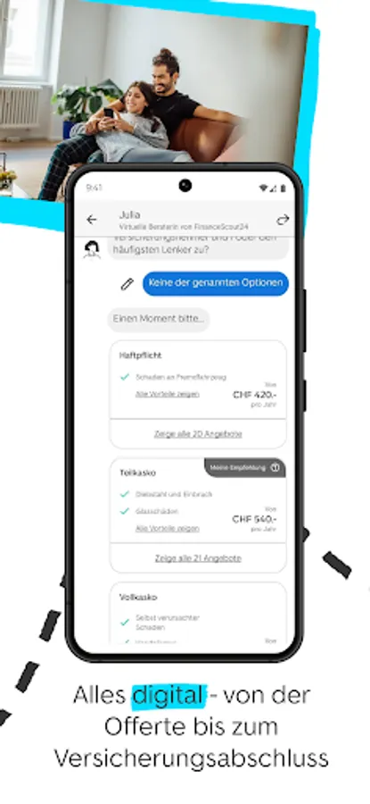 In der Regel erhältst du einen Vorschlag für eine günstigere Versicherung innerhalb weniger Minuten.