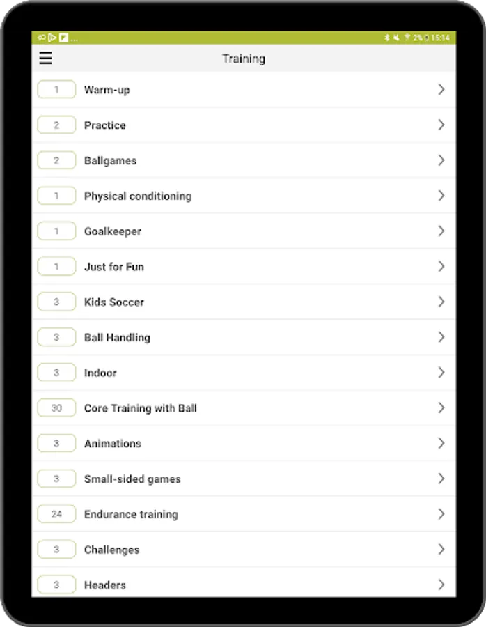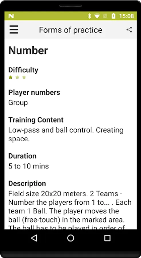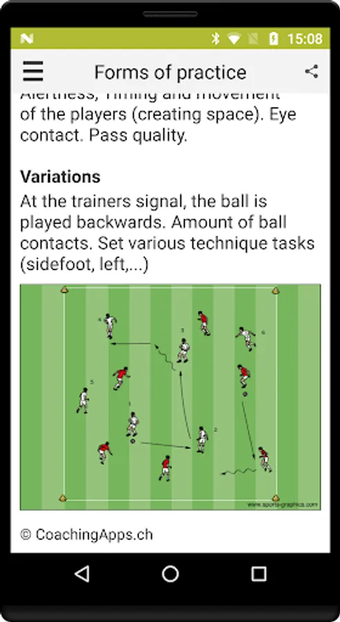 The app includes some basic information on how to set up a training session and structure its content.