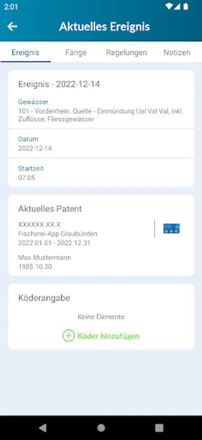 The app supports the fishermen with the registration and offers easier handling. The susceptibility to errors should be reduced. It also offers an immediate evaluation of personal fishing events.