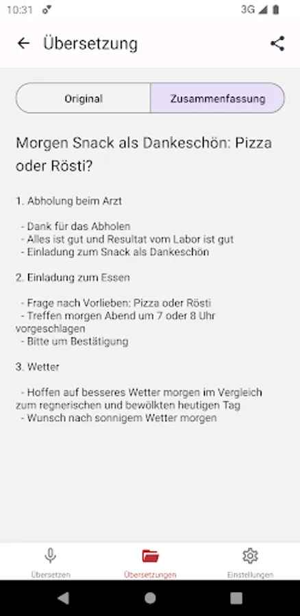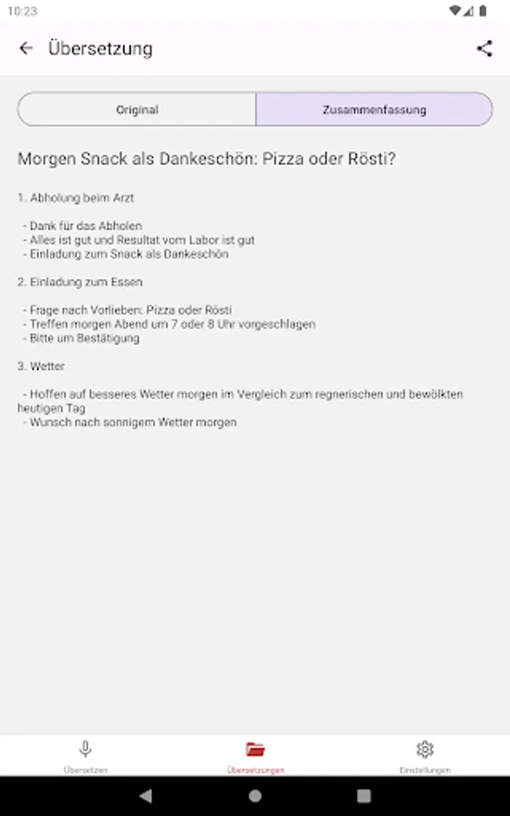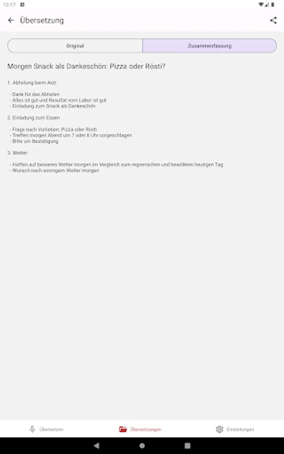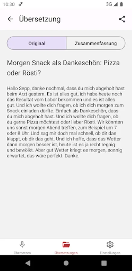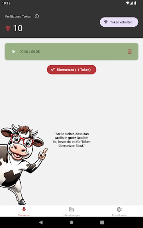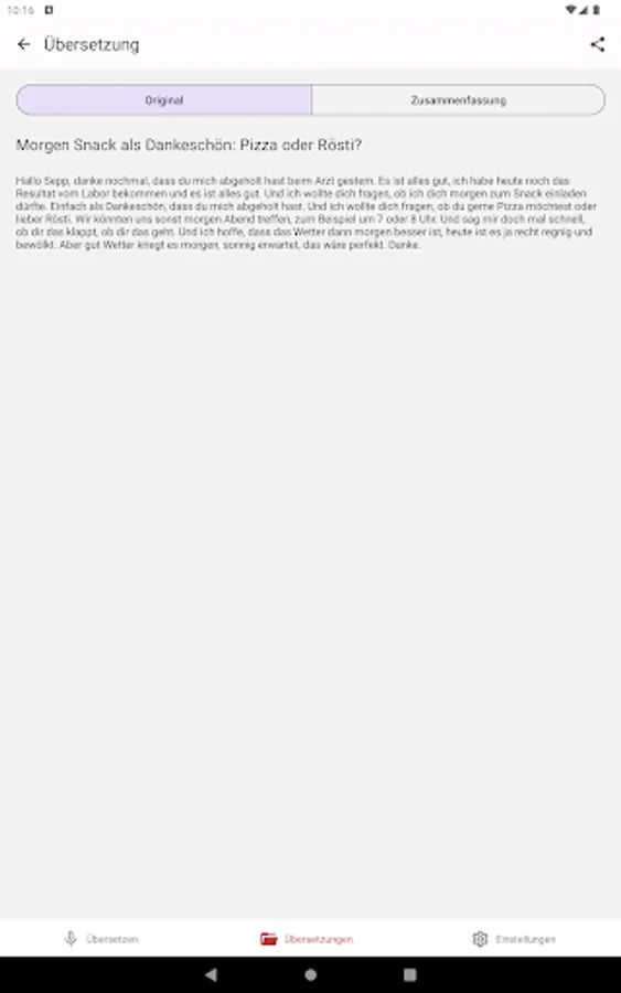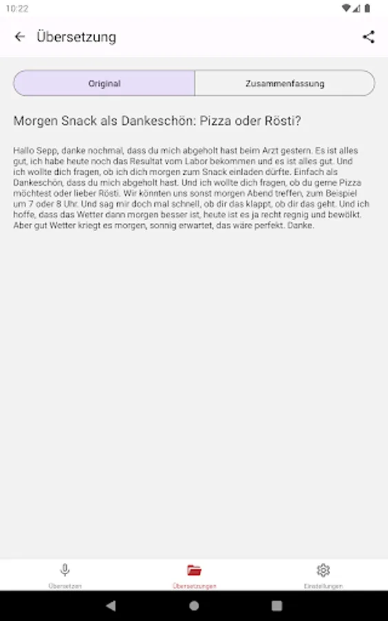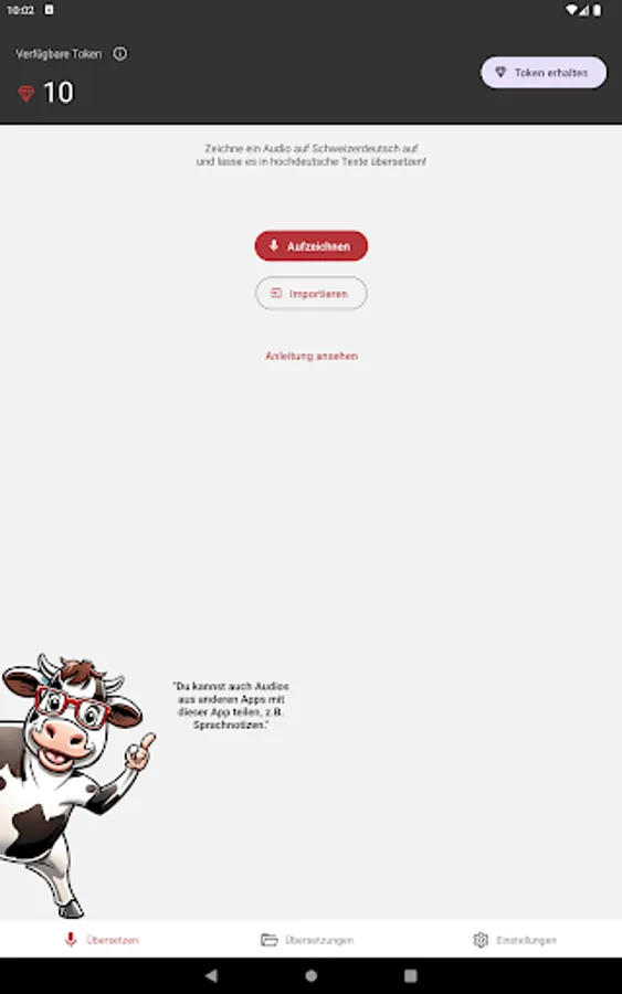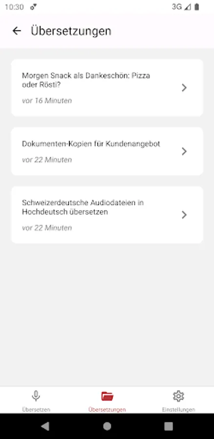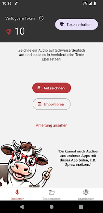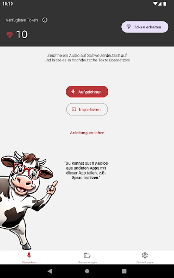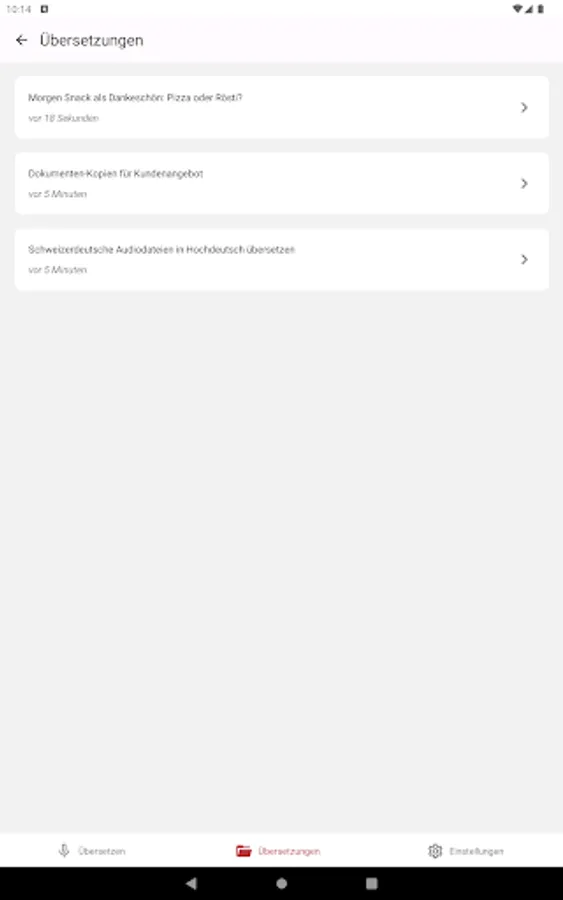 Create an audio in Swiss German and have it translated into High German texts in a few seconds! You can then load the texts into other apps and use them there. You can also share audios from other apps with this app and have them translated.