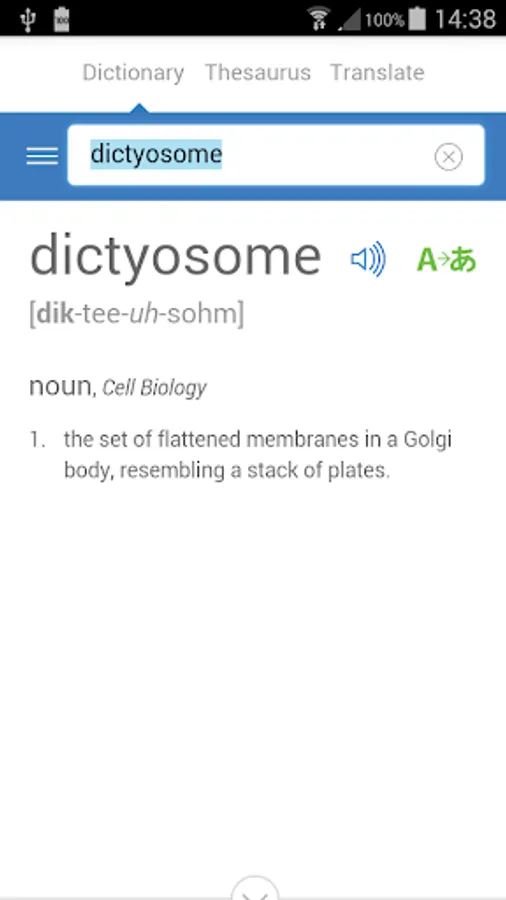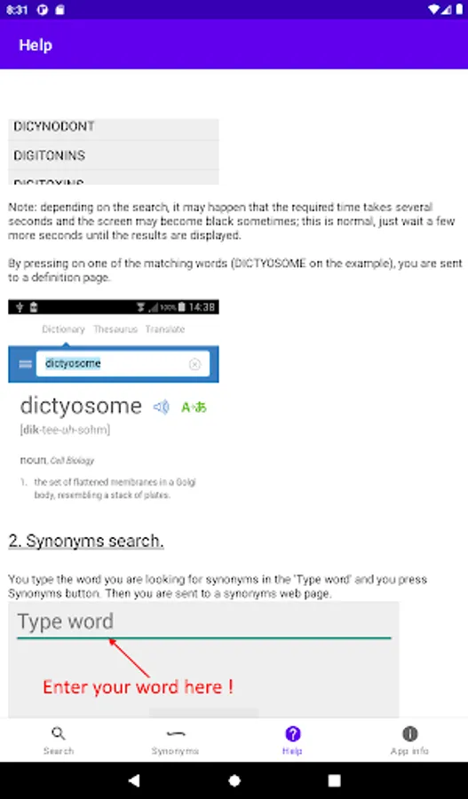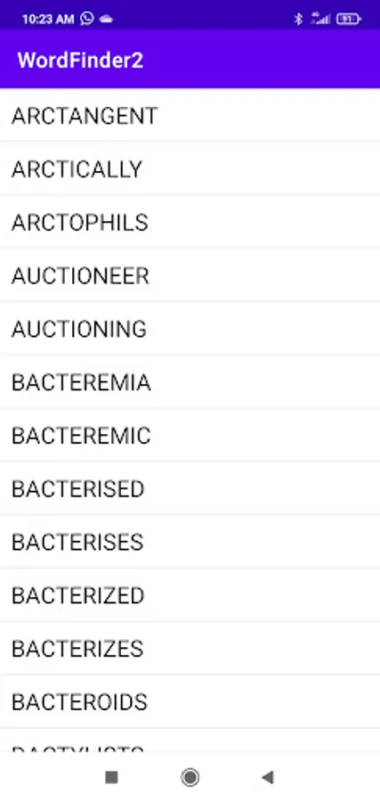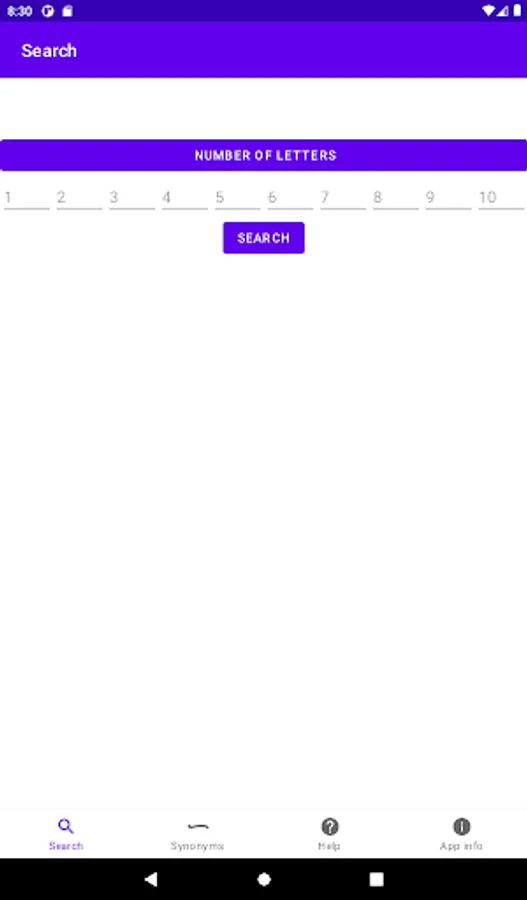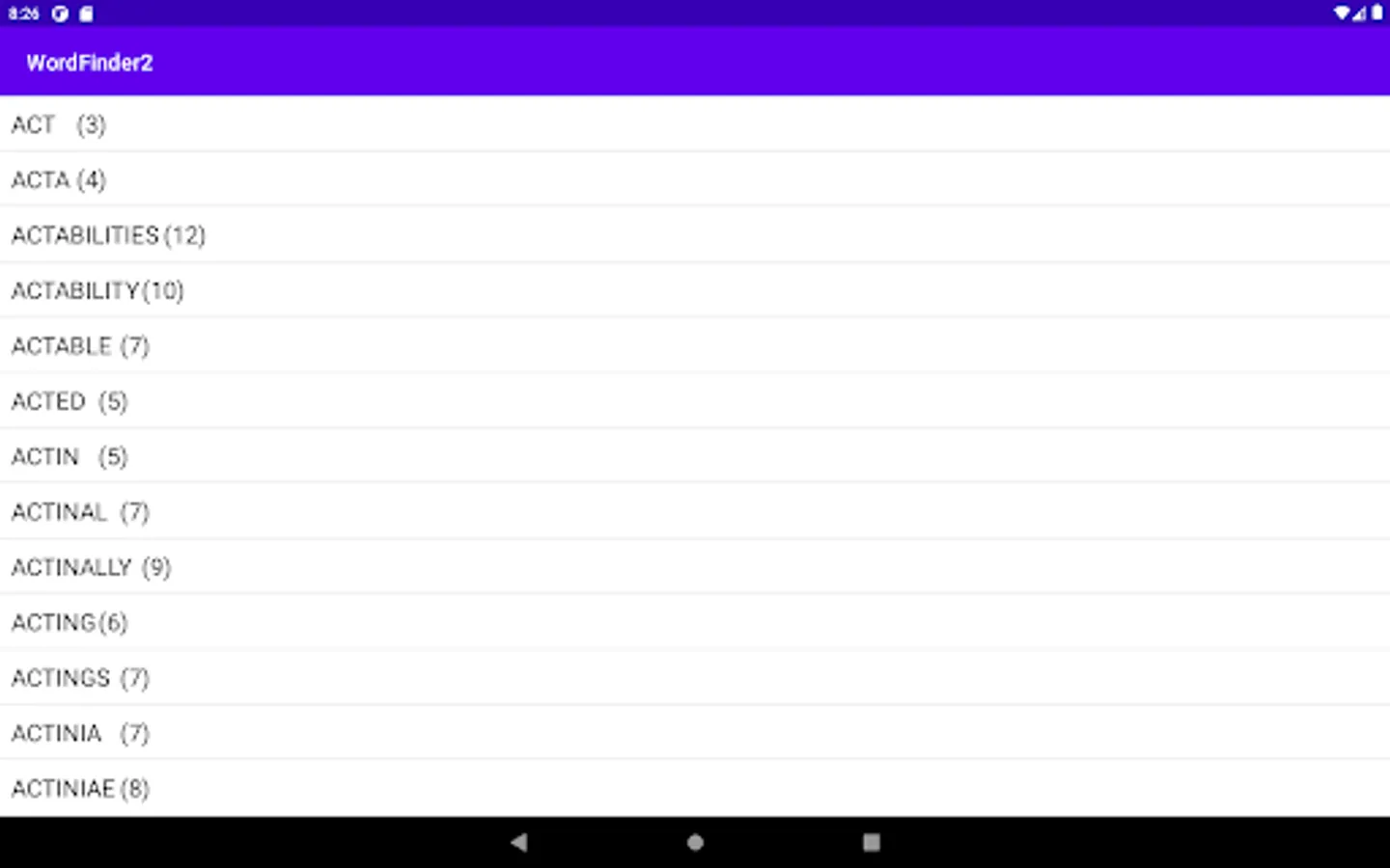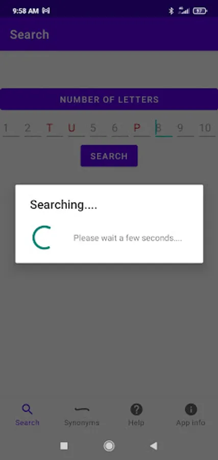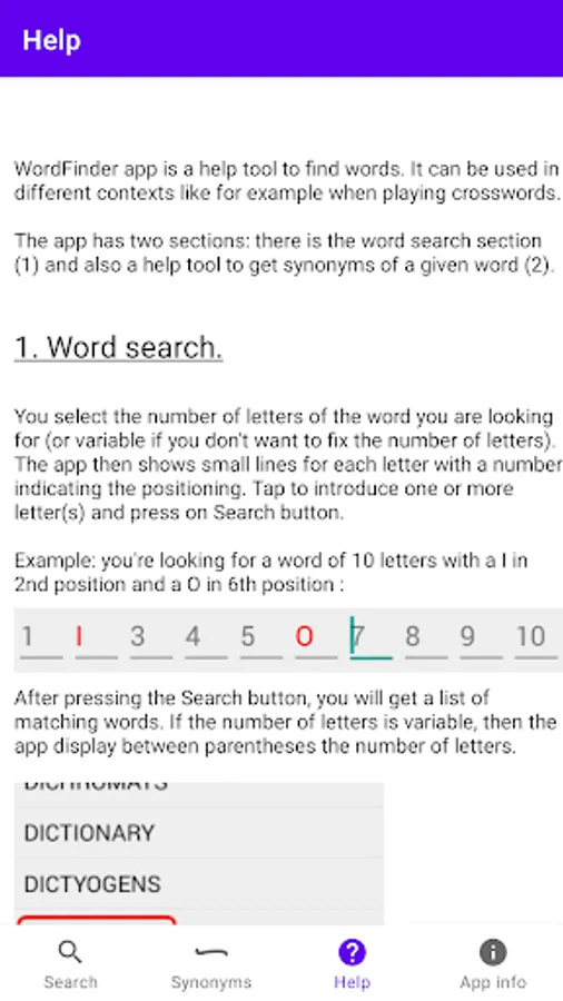 The search for words is carried out by indicating letters. For each word found, the application can display a definition.