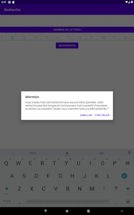 The search for words is carried out by indicating letters. For each word found, the application can display a definition.